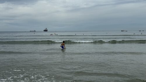 朝からホテル前のビーチで海水浴を満喫しました。海が目の前にあるって、やっぱり最高ですね。